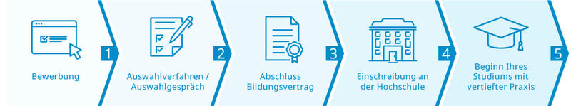 Wenn Sie sich für das Studium mit vertiefter Praxis in einem Studiengang mit IT-Ausrichtung interessieren, dann können Sie sich ganz einfach bei einer der Verwaltungen als Ihrem möglichen Praxispartner bewerben. Bitte entnehmen Sie die Einzelheiten den Ausführungen weiter unten. Ihr Bewerbungs- und Einstellungsprozess könnte dann so aussehen:
